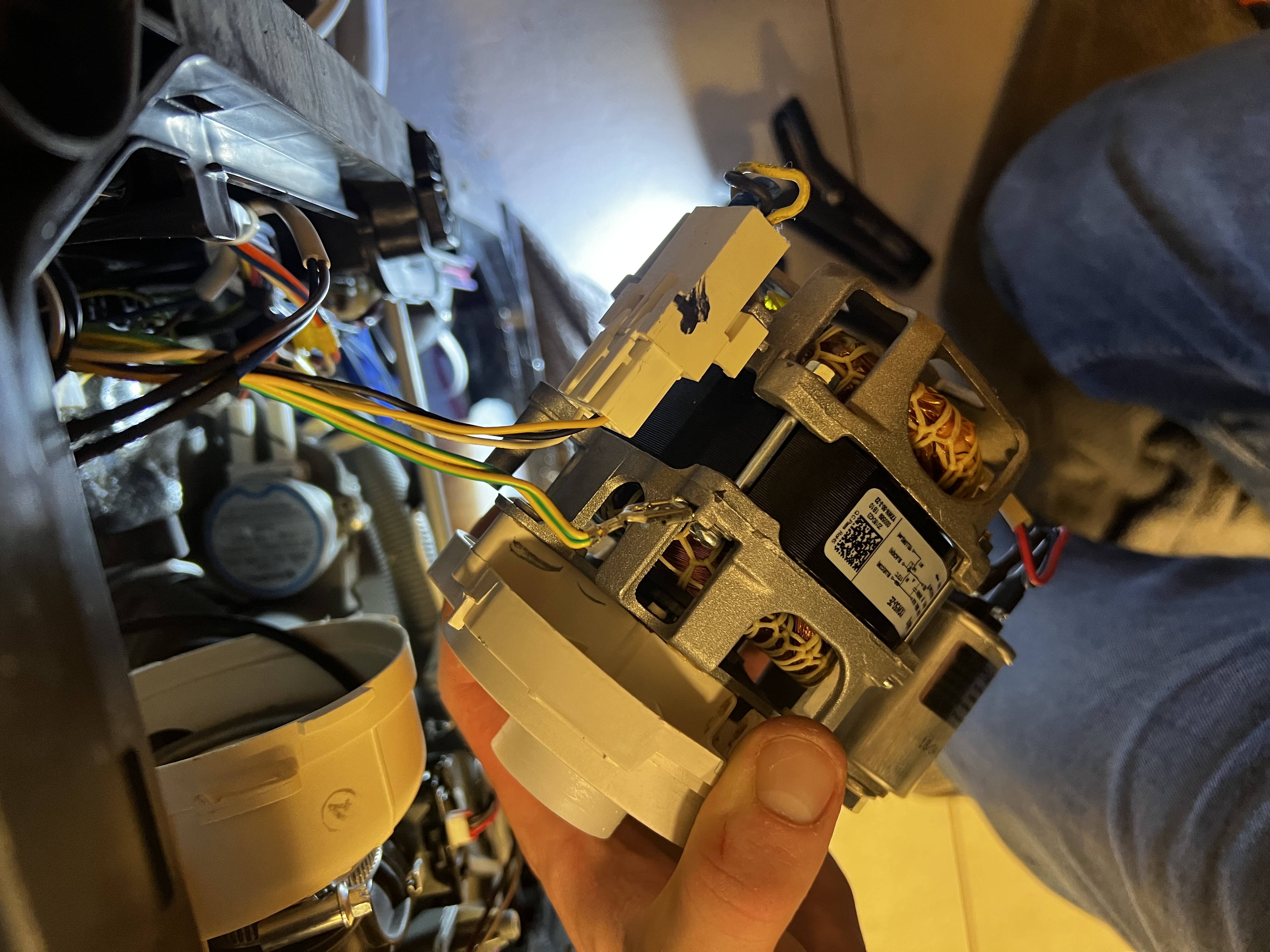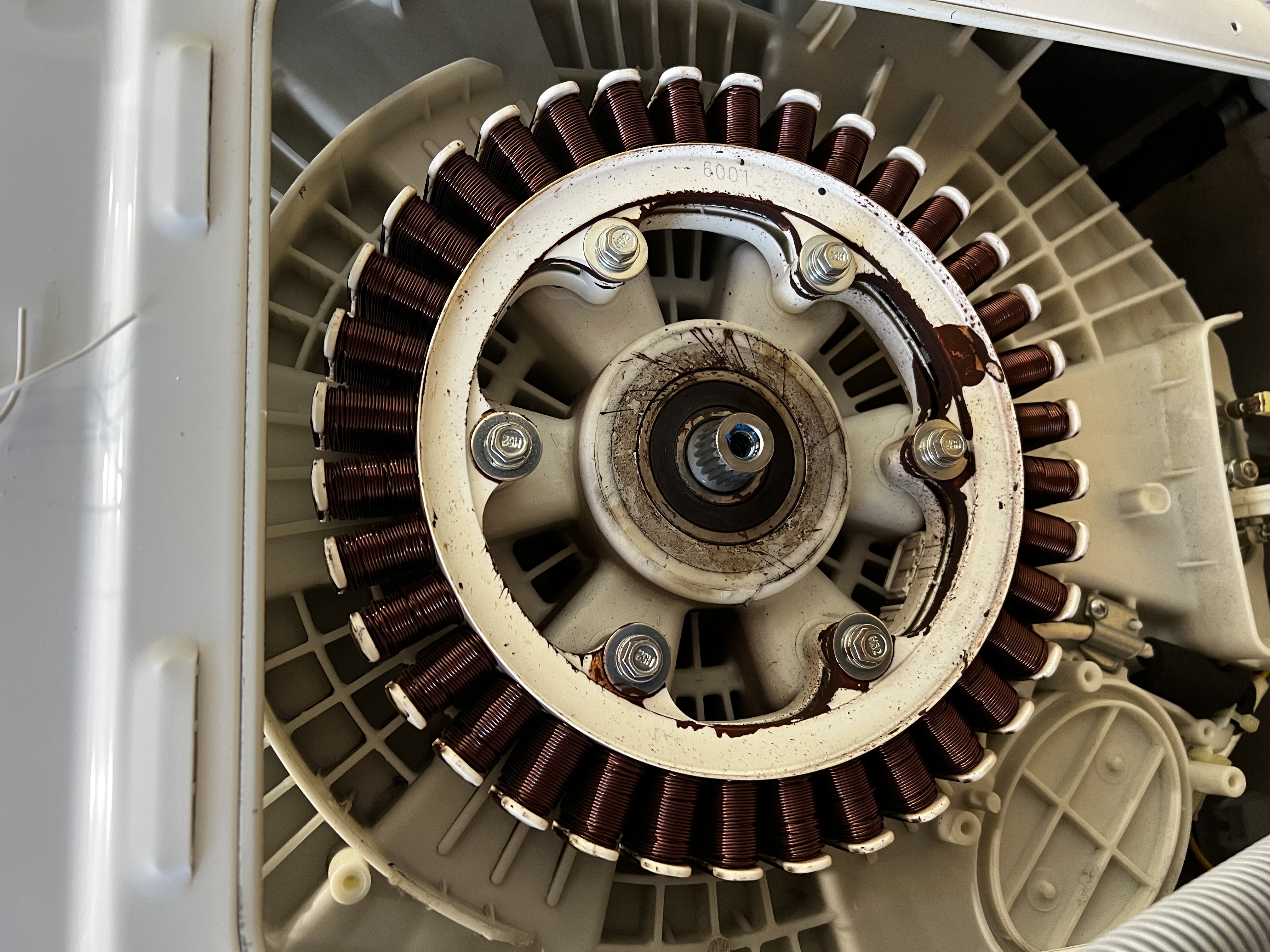 Pralka z silnikiem Direct Drive wirowała z hałasem i stopniowo traciła wydajność. Po demontażu stator okazał się uszkodzony — wymiana przywróciła cichą i sprawną pracę urządzenia.